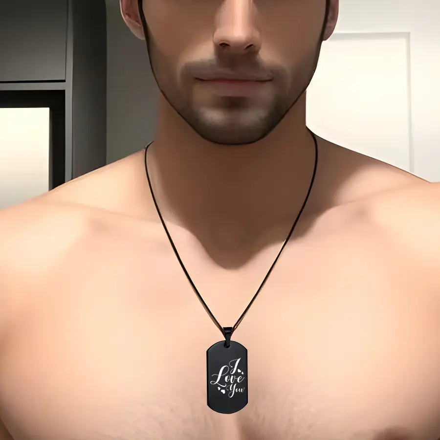 قلادة سوداء مميزة لذكرى جميلة محفورة بتقنية الليزر الاحترافية بصورة من اختيارك من جانب و كتابة من الجانب الآخر