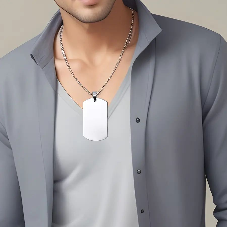 قلادة مميزة من تصميمك لذكرى جميلة محفورة بتقنية الليزر الاحترافية بصورة من اختيارك من جانب و كتابة من الجانب الآخر