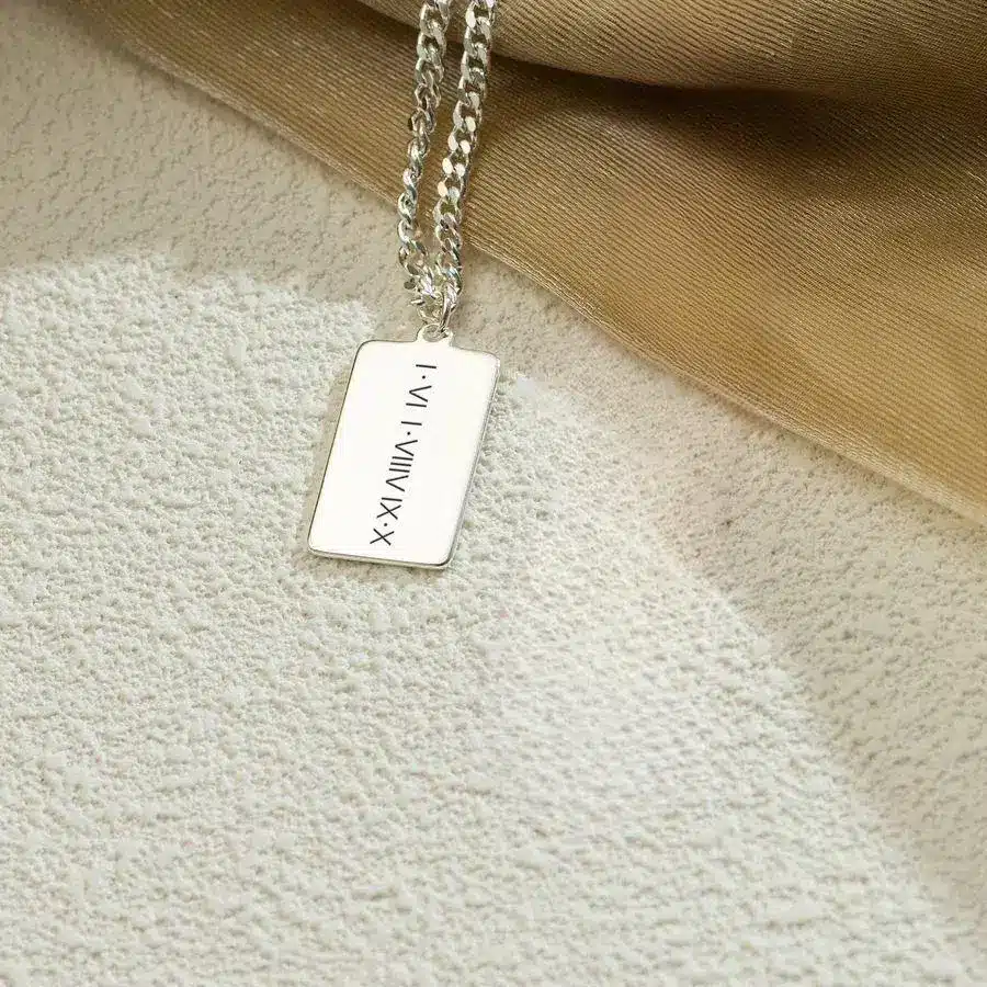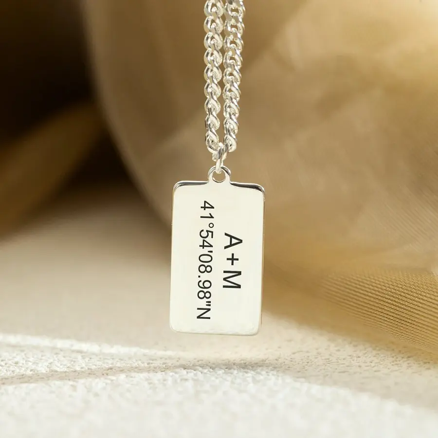 قلادة فضية مميزة من تصميمك لذكرى جميلة محفورة بتقنية الليزر الاحترافية بعبارة أو شعار من اختيارك