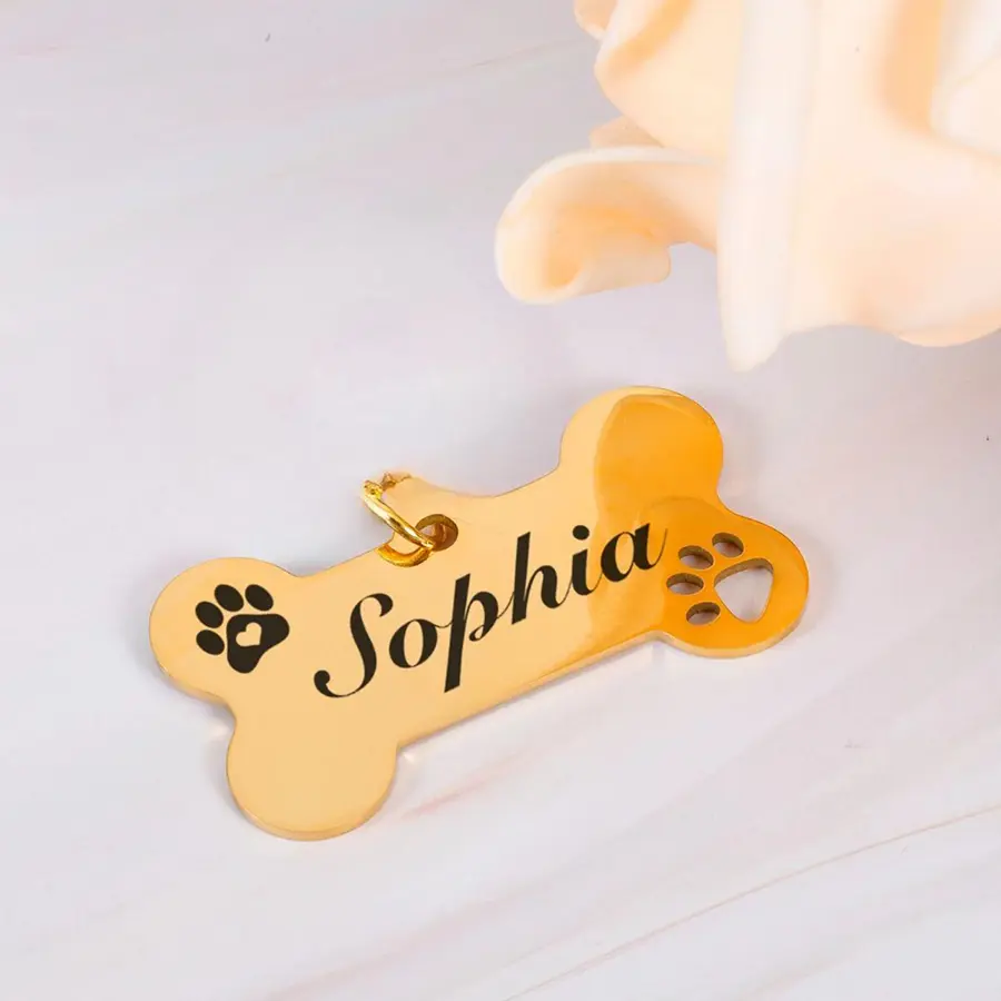 تعليقة ذهبية مميزة لحيوانك الأليف من تصميمك محفورة بتقنية الليزر الاحترافية بعبارة أو شعار من اختيارك
